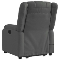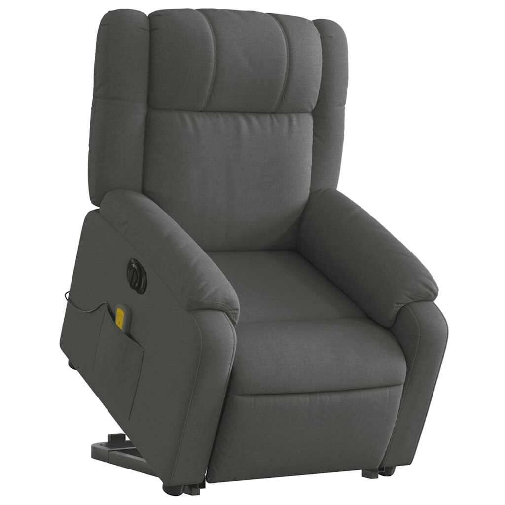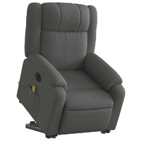 Sit back and drift away in this highly comfortable electric stand up massage recliner chair! Power lift function: This recliner chair for the elderly is equipped with an electric motor for the lifting-up function. Thanks to the function that pushes the entire chair up, you can easily stand without stressing your back and knees with a simple press of the button.Electric reclining function: This reclining chair is also equipped with an electric motor that helps automatically adjust the footrest and backrest to any position as per your comfort with a simple press of the button on the side of the chair. This feature allows for a maximum tilt of 135 degrees. Additionally, the backrest can go automatically back to the original place with an easy press of the button.Vibration function: The featured 6 massage points let you experience a better-targeted massage. Additionally, the included hand control allows you to pick different massage programs. The massage function is powered by the USB connector that requires a certified 5V USB power source (not included).Comfortable seat experience: The thickly padded seat, backrest, and wide armrests covered in fabric provide a cosy and warm sensation, making you feel embraced while seated. The fabric features a simple and clean look and is breathable and durable.Convenient side pocket: This armchair has a side pocket for your remote control or keeping your essential items within easy reach.Solid and stable frame: The frame made of wood and metal provides a strong structure and stability. This reclining armchair is comfortable and durable.