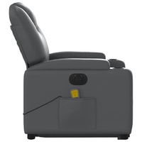 Sit back and drift away in this highly comfortable electric stand up massage recliner chair! Power lift function: This recliner chair for the elderly is equipped with an electric motor for the lifting-up function. Thanks to the function that pushes the entire chair up, you can easily stand without stressing your back and knees with a simple press of the button. Electric reclining function: This reclining chair is also equipped with an electric motor that helps automatically adjust the footrest and backrest to any position as per your comfort with a simple press of the button on the side of the chair. This feature allows for a maximum tilt of 135 degrees. Additionally, the backrest can go automatically back to the original place with an easy press of the button. Vibration function: The featured 6 massage points let you experience a better-targeted massage. Additionally, the included hand control allows you to pick different massage programs. The massage function is powered by the USB connector that requires a certified 5V USB power source (not included). Comfortable seat experience: The thickly padded seat, backrest, and wide armrests covered in faux leather provide a cosy and warm sensation, making you feel embraced while seated. The faux leather is a highly durable material. It is resistant to stain, making it easy to clean with a damp cloth. The smooth surface also gives a luxurious look and the beauty of real leather. Convenient cup holders and side pocket: This armchair has two convenient cup holders for your drinks and a side pocket for your remote control or keeping your essential items within easy reach. Solid and stable frame: The frame made of wood and metal provides a strong structure and stability. This reclining armchair is comfortable and durable.