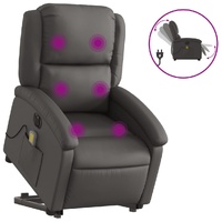 Sit back and drift away in this highly comfortable electric stand up massage recliner chair! Power lift function: This recliner chair for the elderly is equipped with an electric motor for the lifting-up function. Thanks to the function that pushes the entire chair up, you can easily stand without stressing your back and knees with a simple press of the button. Electric reclining function: This reclining chair is also equipped with an electric motor that helps automatically adjust the footrest and backrest to any position as per your comfort with a simple press of the button on the side of the chair. This feature allows for a maximum tilt of 135 degrees. Additionally, the backrest can go automatically back to the original place with an easy press of the button. Vibration function: The featured 6 massage points let you experience a better-targeted massage. Additionally, the included hand control allows you to pick different massage programs. The massage function is powered by the USB connector that requires a certified 5V USB power source (not included). Comfortable seat experience: The thickly padded seat, backrest, and wide armrests covered in real leather provide a cosy and warm sensation, making you feel embraced while seated. Real leather is a naturally timeless material. It can last a lifetime with proper care and maintenance. The smooth surface also gives it a stylish look while ensuring optimal comfort. Convenient side pocket: This armchair has a side pocket for your remote control or keeping your essential items within easy reach. Solid and stable frame: The frame made of wood and metal provides a strong structure and stability. This reclining armchair is comfortable and durable.
