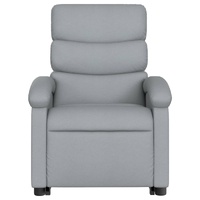 Sit back and drift away in this highly comfortable electric stand up massage recliner chair! Power lift function: This recliner chair for the elderly is equipped with an electric motor for the lifting-up function. Thanks to the function that pushes the entire chair up, you can easily stand without stressing your back and knees with a simple press of the button. Electric reclining function: This reclining chair is also equipped with an electric motor that helps automatically adjust the footrest and backrest to any position as per your comfort with a simple press of the button on the side of the chair. This feature allows for a maximum tilt of 135 degrees. Additionally, the backrest can go automatically back to the original place with an easy press of the button. Vibration function: The featured 6 massage points let you experience a better-targeted massage. Additionally, the included hand control allows you to pick different massage programs. The massage function is powered by the USB connector that requires a certified 5V USB power source (not included). Comfortable seat experience: The thickly padded seat, backrest, and wide armrests covered in fabric provide a cosy and warm sensation, making you feel embraced while seated. The fabric features a simple and clean look and is breathable and durable. Convenient side pocket: This armchair has a side pocket for your remote control or keeping your essential items within easy reach. Solid and stable frame: The frame made of wood and metal provides a strong structure and stability. This reclining armchair is comfortable and durable.