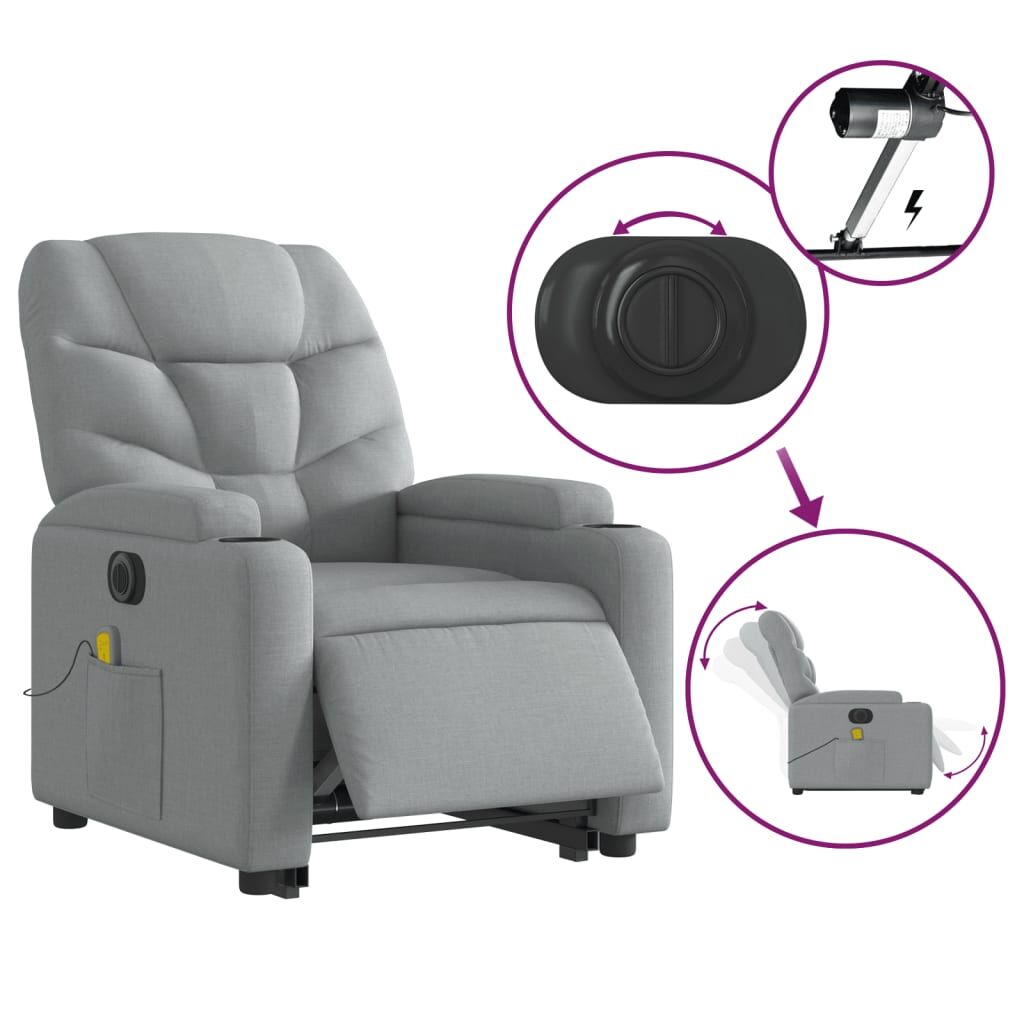 Electric Stand up Massage Recliner Chair Light Grey Fabric