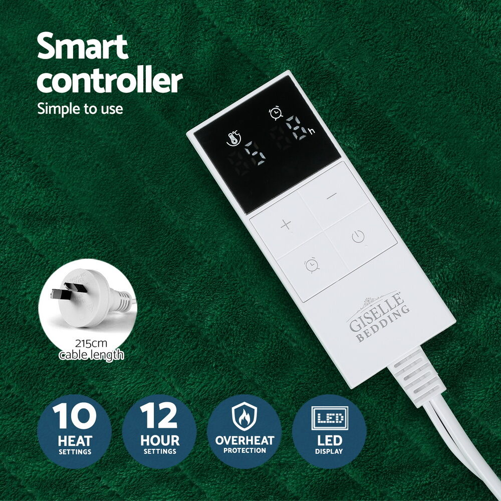 Get that warm and cosy feeling every day with a Giselle Bedding Electric Throw Rug. The double-sided throw rug is made from premium flannel and sherpa fabric, our electric throw rug is just the thing to help you cut down on costly heating bills while still enjoying the heat up-close. The throw rug has all the features of our electric blankets with up to 10 temperature settings, a 12-hour timer, overheat protection, automatic shut-off and a detachable controller with LED display so you can always be in control of the temperature. It is anti-dust mite and bacteria and is machine washable for a clean blanket time and time again. Keep your bedroom or living room cosy and comfortable with a warm and huggable Giselle Bedding Electric Throw Rug.
