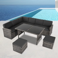 A perfect set for four to eight people, this set comprises of corner sofa, two double sofa, two large stools and cushions for added support.