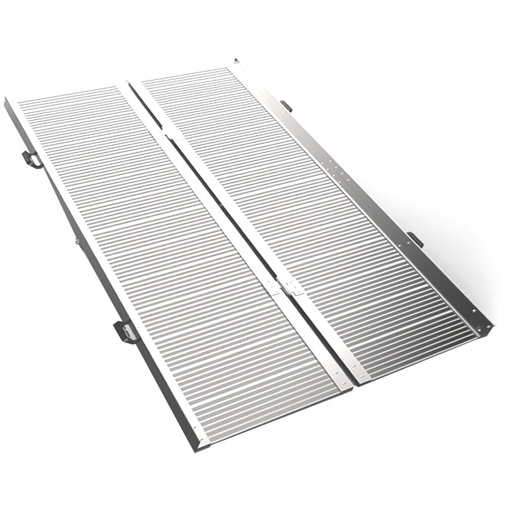 Equipmed ramps are expertly machine welded with non-slip serrated slats and side rails for peace of mind. The ramp comes complete with 2 x locking pins that keep it folded when carrying.