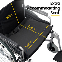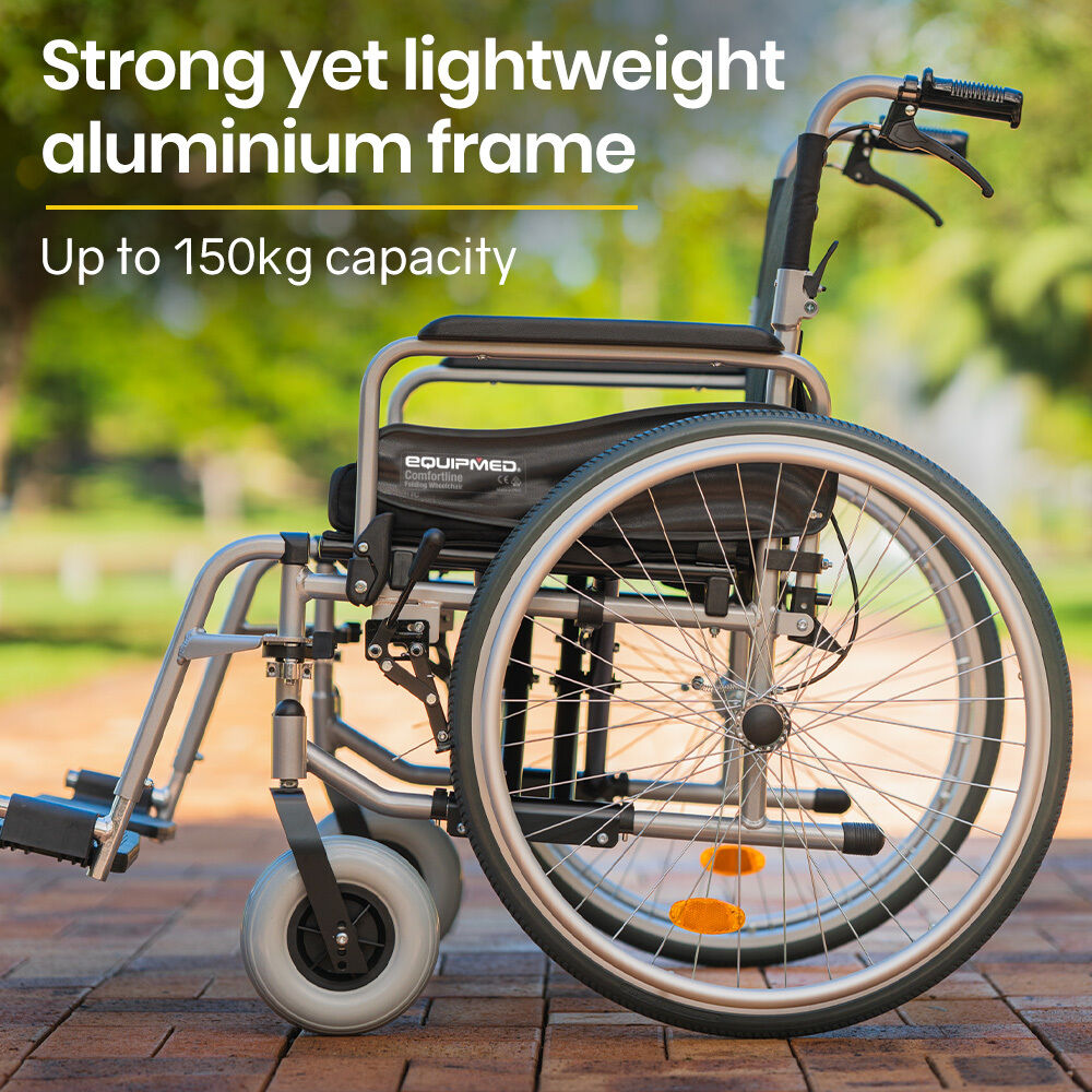 $527.33The Equipmed Comfortline series is a premium extra-wide wheelchair. With a powder-coated aluminium design weight is kept to a minimum, yet it is strong enough to accommodate passengers of up to 150kg.