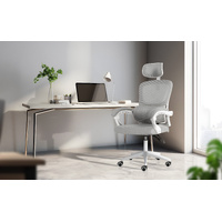 The Veltra Ergonomic office chair offers a balance of comfort and quiet support. The breathable mesh helps keep things cool, while the built-in lumbar support encourages a more natural posture. An adjustable headrest adds support during longer stretches, and the padded armrests give your arms a soft place to rest.