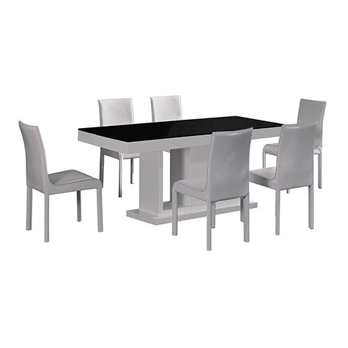 Package contents: 1x7 Pieces Dining Suite Dining Table 6X White Chairs in Rectangular Shape High Glossy MDF Wooden Base Combination of Black White Colour