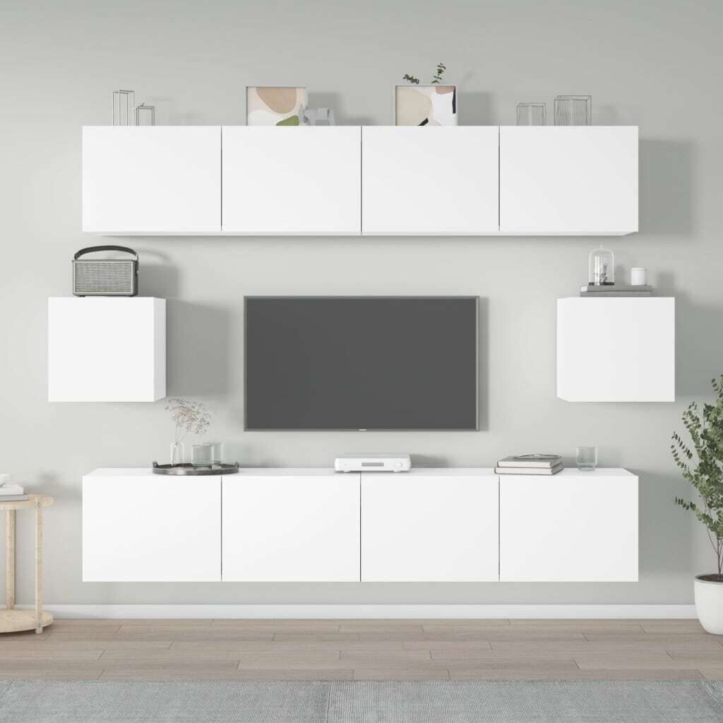 $282.93This classic TV cabinet set is designed to be a focal point of your room, featuring a trendy yet practical design. Sturdy material: The engineered wood is of exceptional quality with smooth surface and also features strength, stability and resistance to moisture. Made of engineered wood, these TV stands are easy to clean.Ample storage space: These TV units provide ample storage space to keep all your magazines, DVDs and any other items well organised.Wall-mounted design: The media cabinet doesn't take any floor space. You can hang it on the wall easily.Practical doors: Keep your essentials free from dust by hiding them behind the door of the media unit. Note:Screw(s) and plug(s) for inside the wall are not included. Seek and use screw(s) and plug(s) suitable for your walls. If you are uncertain, seek professional advice. Read and follow each step of the instruction carefully.Each product comes with an assembly manual in the box for easy assembly.