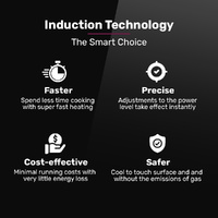 Safety features include an auto-safety shutdown, a child lock function, and the surface cools soon after cooking for peace of mind and easy cleaning. With advanced EuroChef Induction technology, you’ll be inspired to release your inner Masterchef!