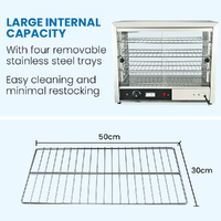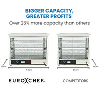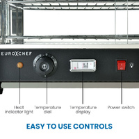 The EuroChef has all the features you need to keep up with demand. Heat resistant handles on the sliding glass doors ensure easy access for staff throughout the day. The four large 57x30cm removal stainless steel shelves are easy to clean and provide plenty of space for all of your food products. This EuroChef Food Warmer Display is the perfect choice for cafes, bakeries, food stands and other food vendors that need to keep food presentable and ready to serve.