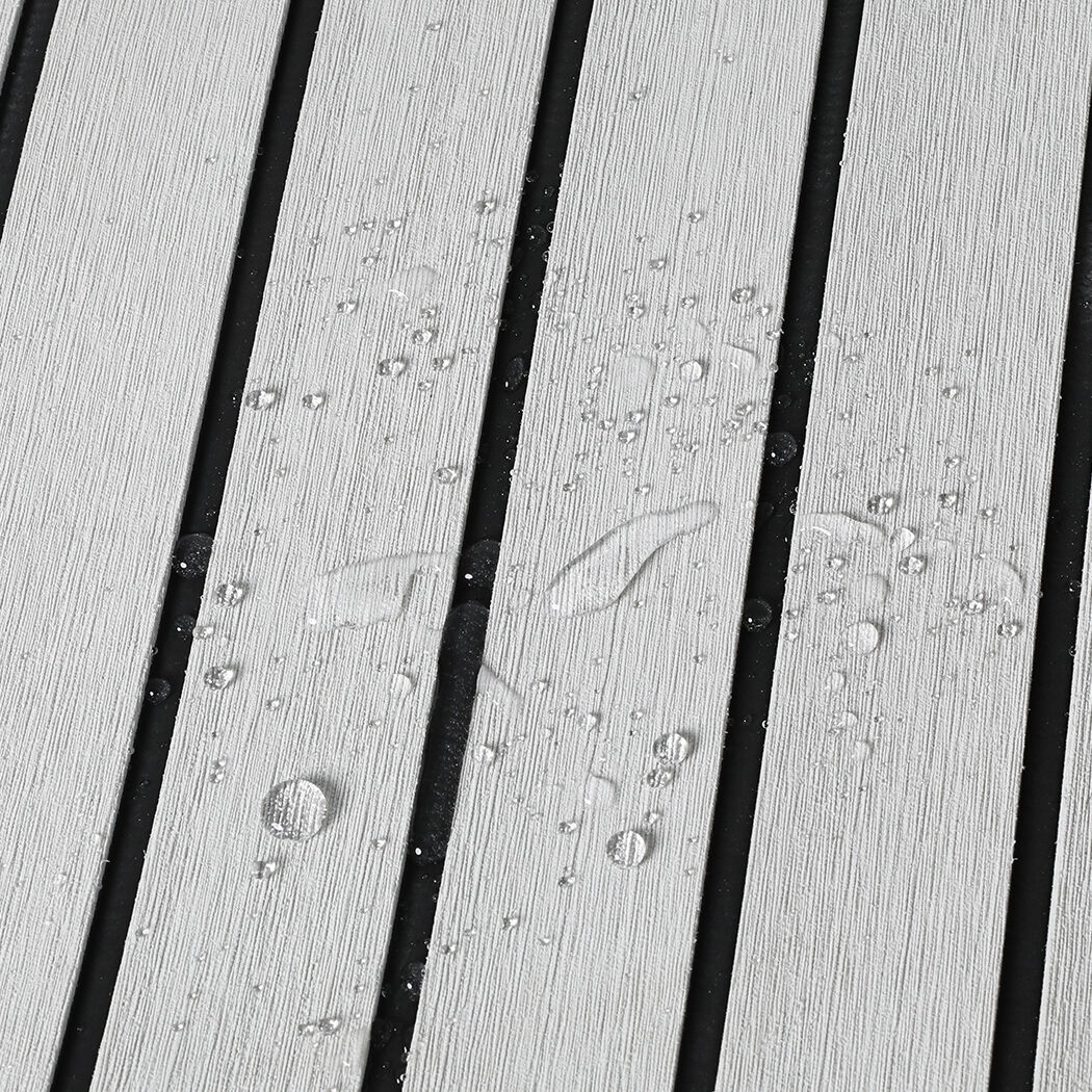 Your EVA foam boat carpet is designed for the fresh and salt water environments. Waterproof. Resistant to chemicals. Non-absorbent. Non-toxic. It won’t last forever but will last a long time.