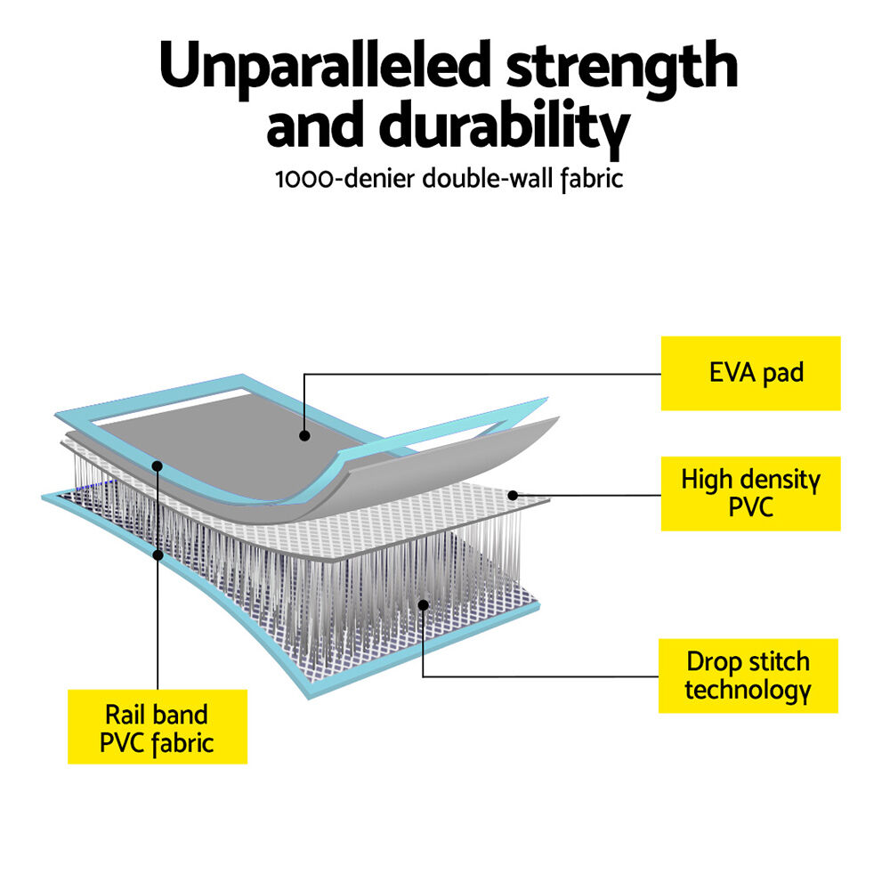 For hours of jumping, fighting and tumbling fun, the Everfit Air Track with pump is a great addition to your home gym. Perfect for gymnastics, martial arts, yoga, cheerleading and more, the 1m air track is a versatile and essential tool for your training regime. Crafted with drop-stitched 1000-denier double-wall fabric, the Everfit air track ensures durability and stability during intense workouts. Softer than foam and designed for robust use, the air track won't twist or bend and helps to significantly reduce impact. Its anti-slip and wear-resistant surface provides a secure grip, allowing you to perform your moves with confidence. The integrated valve system allows for quick and easy inflation and deflation, while the compact roll-up design makes storage and transport a breeze. With two convenient carrying handles and a repair kit included, the Everfit 1m Air Track is the perfect choice for athletes seeking a reliable and portable training solution.
