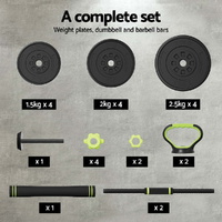 $90.23For a versatile weightlifting workout, the Everfit 7-in-1 Weight Set is an ideal fitness companion. Each weight is made from heavy-duty cast iron material, making them built to last. The set comes with all the connections and attachments you need to use the weights in a variety of ways: as dumbells, barbells, kettlebells, push-up stands and standard weight plates. The weight plates are easy to attach and remove, so you can adjust your weights to your exact fitness specifications - up to 25kg. With a foam-covered barbell bar and non-slip dumbbell handles, the weights are easy to grip and comfortable to hold throughout the exercise. The set is simple to assemble and store, so you can easily incorporate the set into your daily routine without taking up space. Our versatile set is ideal for home gym junkies interested in weight loss, strength training, endurance training, muscle gain and general cardiovascular performance. For a comprehensive workout without leaving the gym, Everfit has you covered with our 7-in-1 Weight Set.