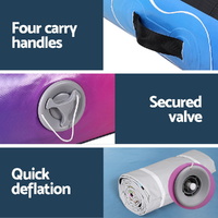 $554.59For hours of jumping, fighting and tumbling fun, the Everfit Air Track is a great addition to your home gym. Perfect for gymnastics, martial arts, yoga, cheerleading and more, the 6m air track is a versatile and essential tool for your training regime. Crafted with drop-stitched 1000-denier double-wall fabric, the Everfit air track ensures durability and stability during intense workouts. Softer than foam and designed for robust use, the air track won't twist or bend and helps to significantly reduce impact. Its anti-slip and wear-resistant surface provides a secure grip, allowing you to perform your moves with confidence. The integrated valve system allows for quick and easy inflation and deflation, while the compact roll-up design makes storage and transport a breeze. With four convenient carrying handles and a repair kit included, the Everfit 6m Air Track is the perfect choice for athletes seeking a reliable and portable training solution.