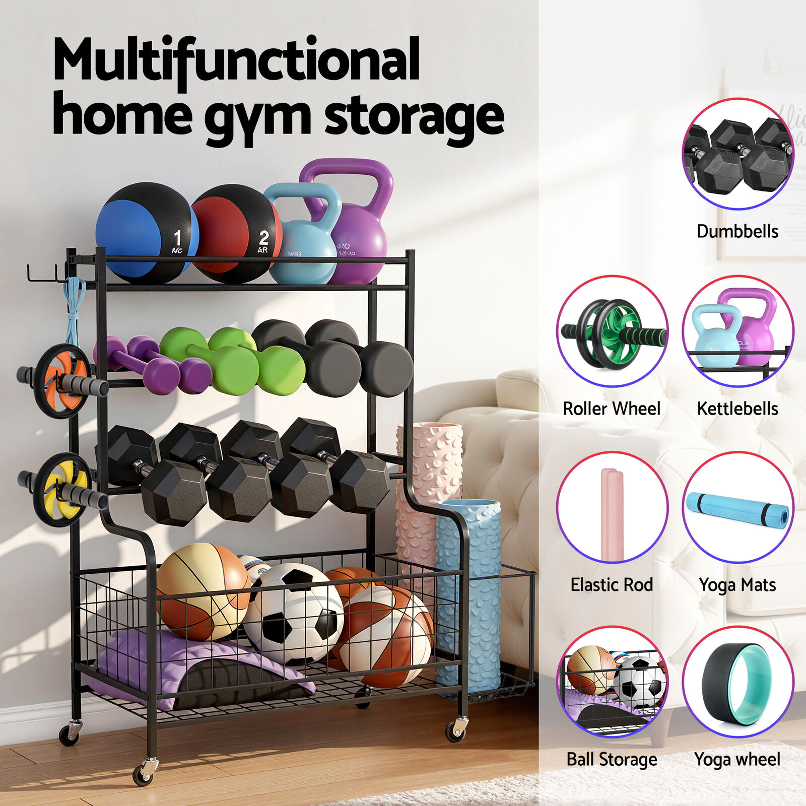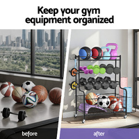 The Everfit Dumbbell Rack revolutionizes home gym organization with its versatile storage solution. Designed for fitness enthusiasts and small studios alike, this rack features dedicated spaces for dumbbells, kettlebells, yoga mats, and other accessories. The industrial-grade iron frame withstands daily use while the scratch-resistant black finish complements modern decor. Four dual-function wheels (two lockable) provide smooth mobility across floors, and the compact design maximizes space efficiency. Ideal for garages, basements, or dedicated workout rooms.