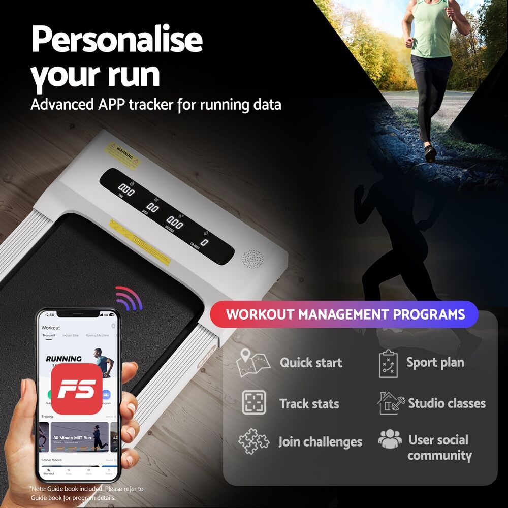 $214.31For a truly effective approach to weight loss and toning, our Everfit Walking Pad is your perfect companion. Compact and sturdy, the walking pad allows you to perform essential cardio exercises within the comfort of your home. It is foldable, easy to move, and comes ready to hit the ground running - no assembly required. Controlled by either the companion app or remote control, set up speeds of between 1km/h and 10km/h and monitor speed, time, distance and calories. Its powerful and energy-efficient motor produces smooth and seamless operation and the anti-slip belt phone holder makes your session a comfortable and controlled experience. The running belt uses an enhanced shock control system to help reduce the risk of joint injury, making the walking pad suitable for adults and seniors. When all the hard work is done, easily fold and store away the compact walking pad. Other great features include smooth wheels for easy mobility and Bluetooth speakers for entertainment while exercising. For health results that matter, our fitness walking pad is the one to run to.