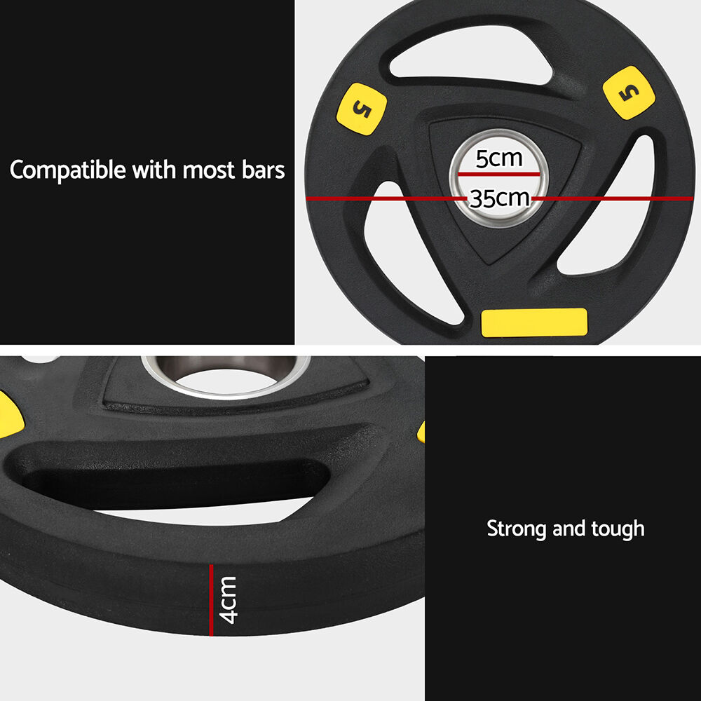$28.19Enhance your weight-lifting routine with the Everfit Weight Plate, available in 15kg/20kg sizes. The weight plates are constructed from heavy-duty cast iron and are designed to be sturdy and tough for all your exercise needs. The plates are covered in a tough rubber coating and feature a three-hole grip for easy handling. These weight plates are simple to use and compatible with most bars, making them versatile for use with dumbbells, barbells, or on their own. A handy weightlifting tool, they can be used for exercises for weight loss, strength training, endurance training and improved cardiovascular performance. Whether you are a beginner or an experienced lifter, Everfit Weight Plates provide a reliable and efficient way to achieve your fitness goals.
