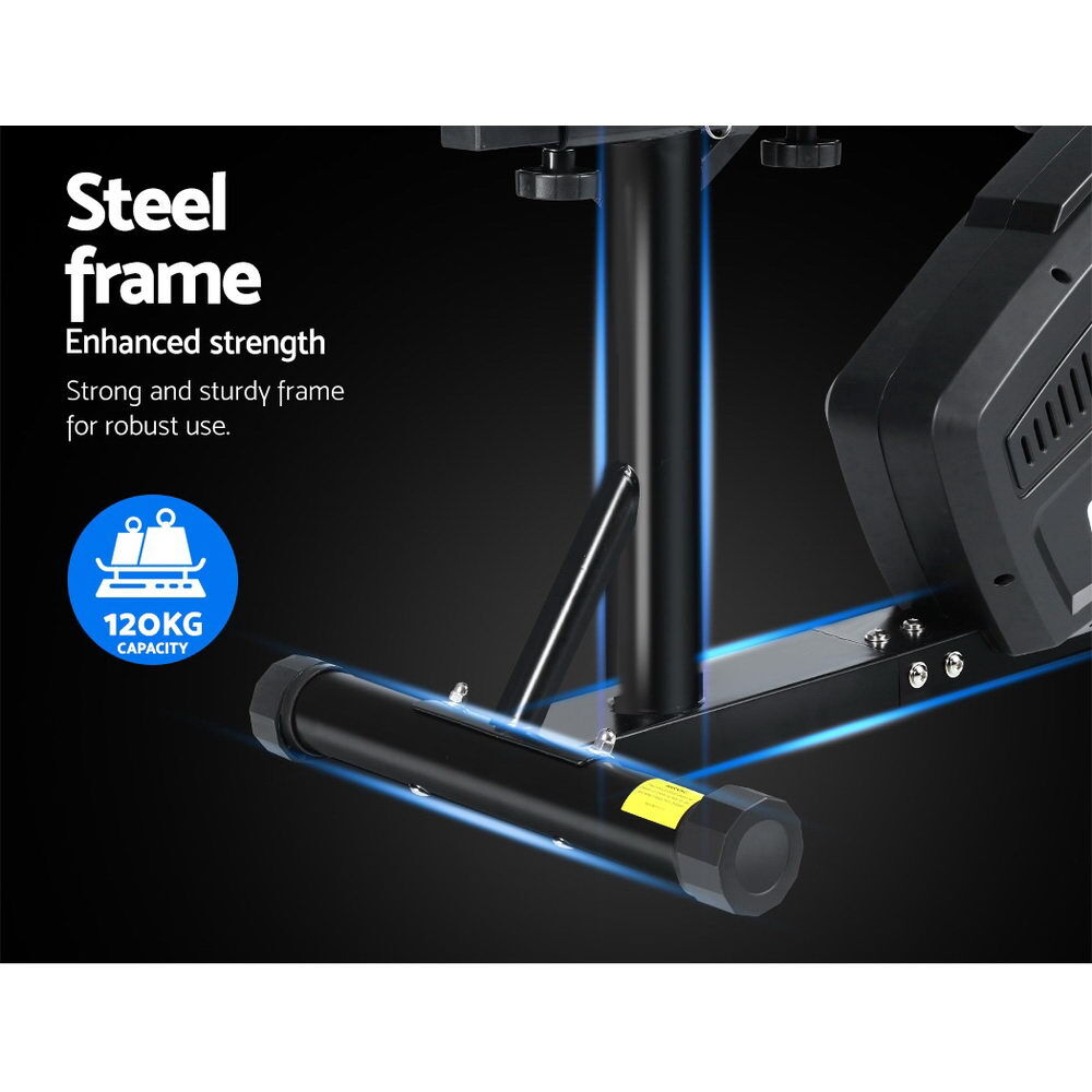 $284.81Get an effective workout in the comfort of your home while watching TV or listening to your favourite music. The Everrfit Recumbent Exercise Bike is just perfect to have all these at once. Designed for people who prefer a low or non- impact exercise regime, our recumbent bike provides adequate exercise for the body without causing undue stress and strains on your joints and back. The relaxed seating position actually allows you to balance your body weight better and get your legs and heart to work together in tandem for better blood flow. The LCD display also helps to track parameters easily to let you monitor your health while exercising. The bike itself is constructed of an industrial-strength power-coated steel frame for durability and rust resistance. With up to eight resistance levels, the bike can be adjusted for the desired exercising intensity to suit your workout. Plus, the magnetic flywheel is smooth and runs almost friction-free. Other features include an adjustable seat length, wide and comfortable seat and non-slip protective feet. Not least, the recumbent bike is also easy to transport with two handy wheels for hassle-free moving.