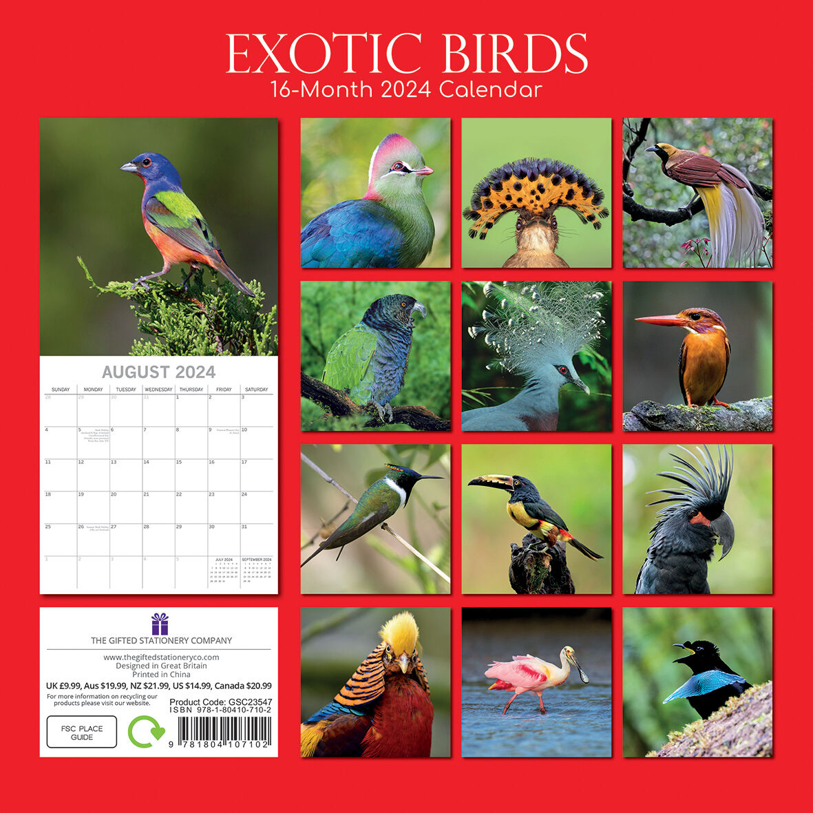 Explore 2024 with the wonders of exotic birds, displaying nature's vibrant palette. Perfect for birdwatchers and nature enthusiasts, each page offers a generous grid for your ornithological observations. Brand New Calendar with Beautifully design, Sealed in Original Packaging, each calendar includes a large grid running from Sunday to Saturday. Publisher: The Gifted Stationery Co. Dimensions: 30cm (w) x 30cm (h) closed; 30cm (w) x 60cm (h) opened Time Span: 16 months (January to December 2024 monthly, September to December 2023 on-a-page) 2024 Square Wall Calendar featuring beautiful colour photographed images for every month of the year. Like most Wall calendars, this one comes with: