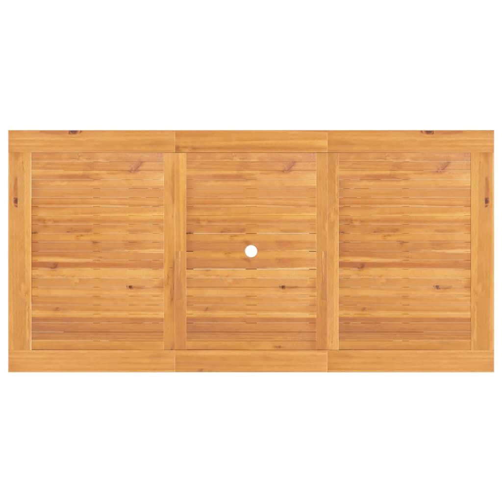 This extendable wooden garden table is a perfect choice for outdoor use and will be the focal point of your garden, terrace or patio. Solid teak wood: Solid teak wood is a beautiful natural material. It has been seasoned, kiln dried and then fine sanded to give a very smooth appearance. Teak wood is known for its exceptional strength and weather resistance.Extendable design: Thanks to its special design, this outdoor table can be extended when extra space is required.Parasol hole: There is a parasol hole in the patio table top so you can easily attach a parasol to create a shady spot.Easy-to-clean surface: The dining table is applied with a beautiful finish to give the wood a warm colour and is easy to clean with a damp cloth.