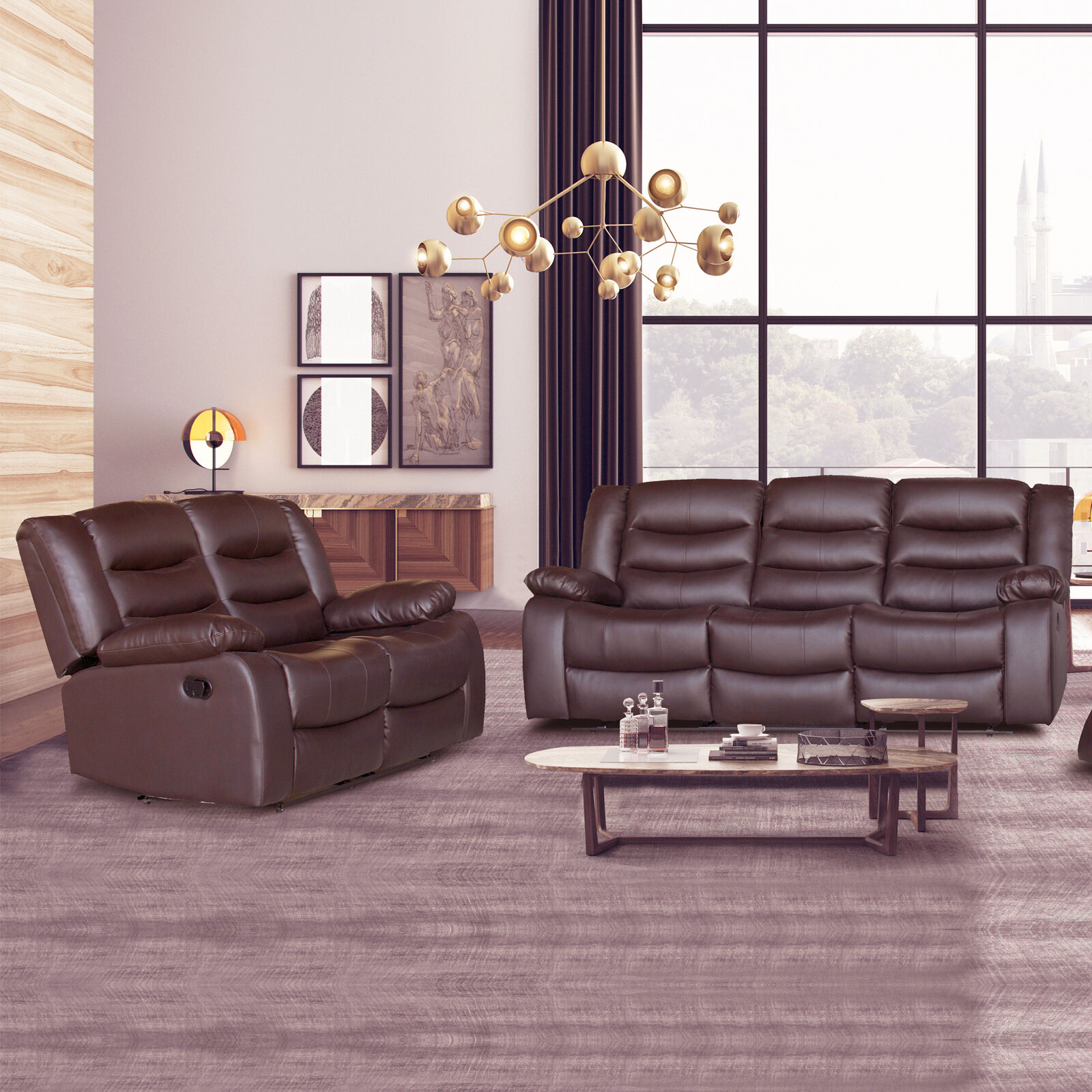Aesthetic Demeanor in leatherette upholstery and fluffy cushioning of this recliner sofa make it stand out from the crowd. Designed with style and comfort in mind, the spacious armrest and cozy seat give this recliner an inviting look, while the quilted seats with plump cushioning give it a luxurious feel.
