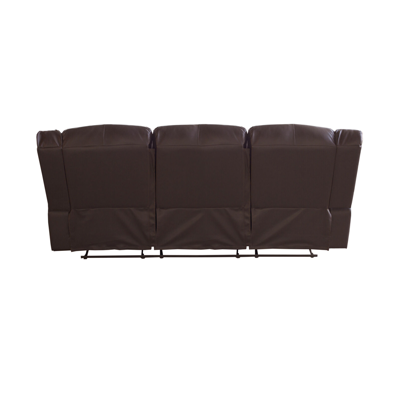 Aesthetic Demeanor in leatherette upholstery and fluffy cushioning of this recliner sofa make it stand out from the crowd. Designed with style and comfort in mind, the spacious armrest and cozy seat give this recliner an inviting look, while the quilted seats with plump cushioning give it a luxurious feel.