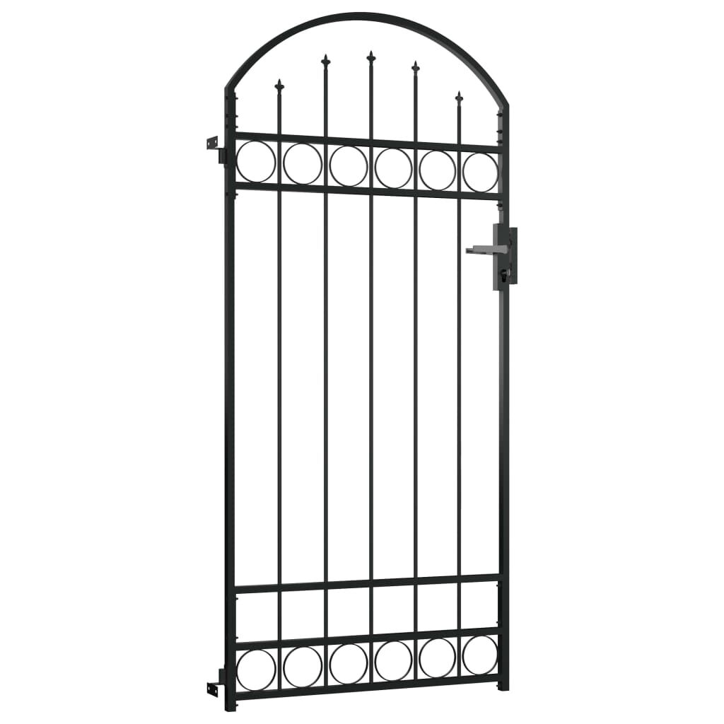 This garden gate will make a contemporarily styled, practical entryway to seclude your garden from the outside world. Highly stable and durable, the fence gate will form a practical security barrier for your garden, patio or terrace. With its elegant, arched top design and strong horizontal braces to reinforce the frame, our garden gate will provide a high degree of security, while forming a fabulous entryway onto your property. Manufactured from heavy-duty steel, the gate is powder-coated against rust and corrosion. This gate comes with sturdy hinges for easy installation, and a heavy-duty locking system with three matching keys is also included in delivery. This garden gate is a great combination of style, strength, stability and corrosion resistance!