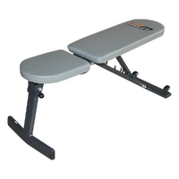 The workout bench can operate flat or with either side inclined or declined for a total of 6 positions, delivering maximum versatility for your home workout. From military presses and bench presses to bent over rows, this bench can do it all. When you're done, just fold the bench up, use the rear wheels to easily slide it around, and store it in the closet or under the bed. And of course, the workout bench features a rugged construction and top-quality materials.