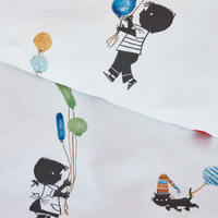 The cheerful Feest Pastel Cotton Quilt Cover Set Single by Fiep Westendorp is packed with beautiful illustrations from 'Jip Janneke' by Annie M. G. Schmidt and Fiep Westendorp. The balloons add a festive and colourful touch to the duvet cover. Printed in red, white, black, blue, orange and green colour tones.