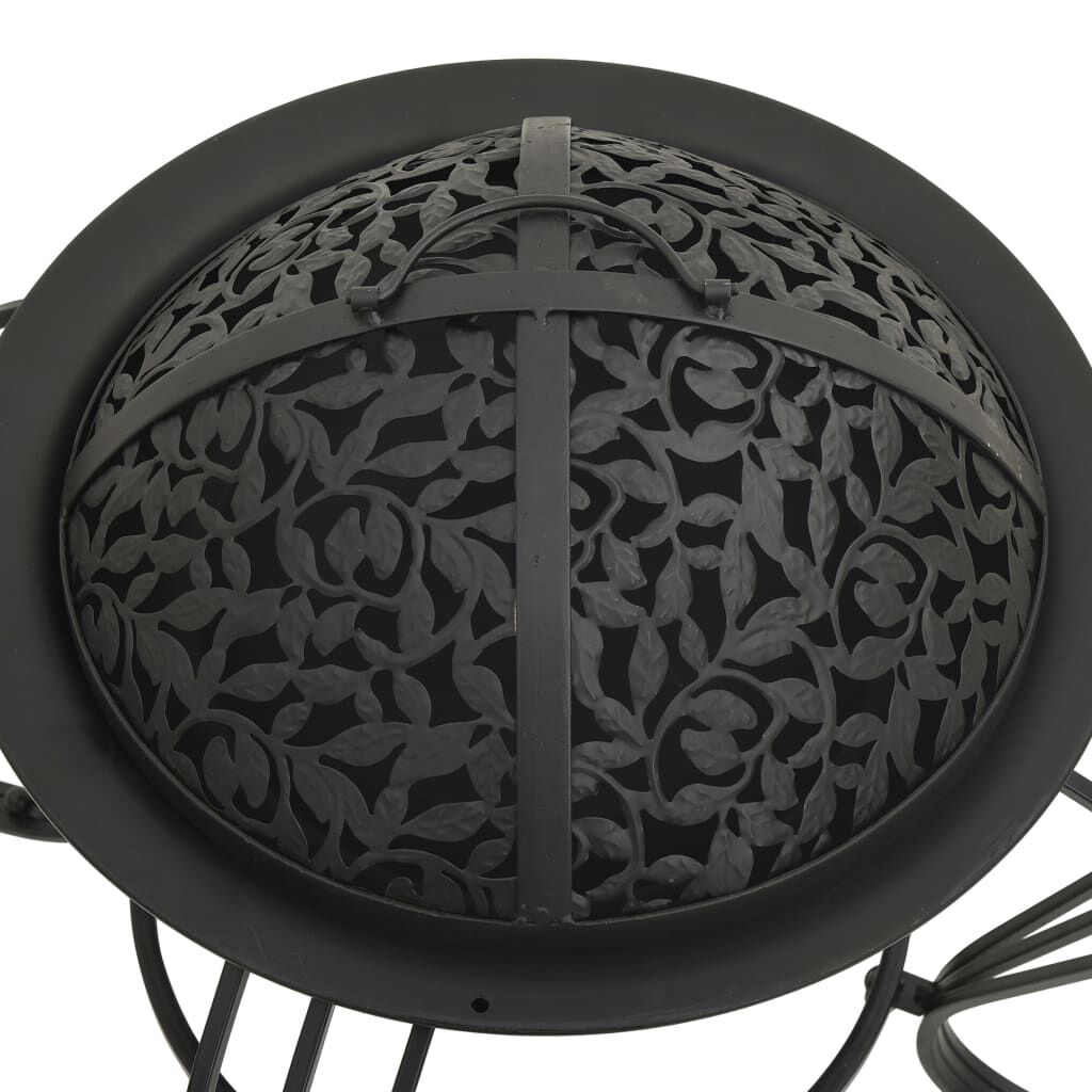 This fire pit will make a decorative and atmospheric addition to your garden or patio, while also keeping you warm when it gets colder in the evening. Made of steel, the fire pit is excellent in absorbing and radiating heat. The carved pattern in the cover appears as an exclusive piece of art, adding to the fire bowl's beauty. Additionally, there is a convenient ring on the cover so that you can carry it easily. The included metal poker can be used for both removing the cover and rearranging the logs. Important notes: It can only be used outdoors. Do not touch the product when there is still burning wood inside or short after it.