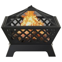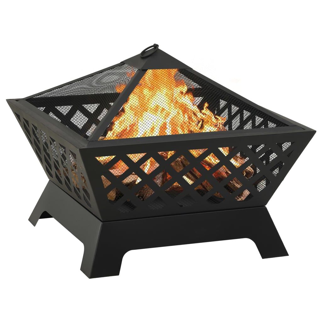 This fire pit will make a decorative and atmospheric addition to your garden or patio, while also keeping you warm when it gets colder in the evening. Made of steel, the fire pit is excellent in absorbing and radiating heat. Featuring a large and deep bowl, this fireplace allows for a large fire for you and your family to enjoy for hours. The mesh allows you to watch the burning fire, and encloses the fire for safety as well as preventing sparks and debris from flying out. Additionally, there is a convenient ring in the mesh cover so that you can carry it easily. The included metal poker can be used for both removing the mesh cover and rearranging the logs. Important notes: It can only be used outdoors. Do not touch the product when there is still burning wood inside or short after it.