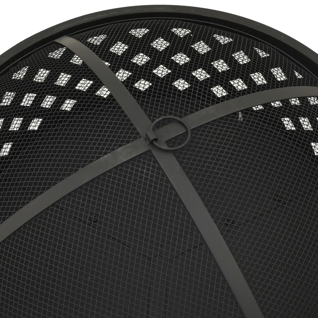 This fire pit will make a decorative and atmospheric addition to your garden or patio, while also keeping you warm when it gets colder in the evening. Made of steel, the fire pit is excellent in absorbing and radiating heat. Featuring a large and deep bowl, this fireplace allows for a large fire for you and your family to enjoy for hours. The mesh allows you to watch the burning fire, and encloses the fire for safety as well as preventing sparks and debris from flying out. Additionally, there is a convenient ring in the mesh cover so that you can carry it easily. The included metal poker can be used for both removing the mesh cover and rearranging the logs. Important notes: It can only be used outdoors. Do not touch the product when there is still burning wood inside or short after it.