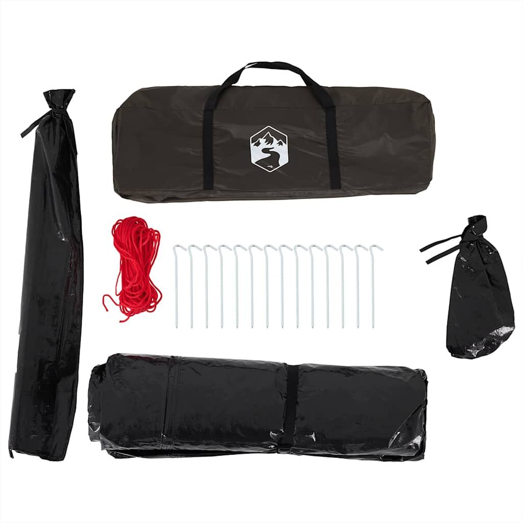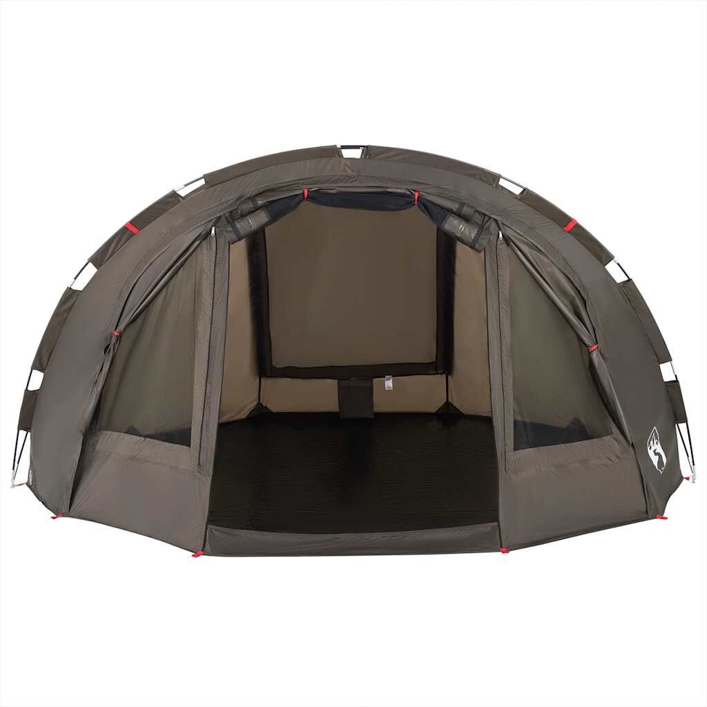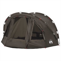 This fishing tent is perfect for creating some shade and protection from the sun's harmful UV rays when fishing. All-round waterproof design: This camping tent, made from polyester with a PU coating, is waterproof and wind resistant. The taped seams effectively prevent rainwater infiltration, while the heavy-duty ground sheet helps maintain a dry and comfortable interior.Easy access: The zippered door allows for easy access. You can roll it up and secure it with the door toggles. It also promotes airflow and provides ample natural light.Convenient electrical cord access: The E-Port allows you to easily connect an extension cord from an external power source to your tent.Lightweight and portable: The foldable and lightweight design allows you to easily pack the tent and store it in the included carry bag for easy transport.Easy setup and takedown: Setting up and taking down the tent is a breeze thanks to the highly flexible and lightweight fibreglass poles and the convenient pin-and-ring connection system. Warning:Keep all flame and heat sources away from this product fabric.