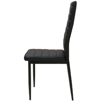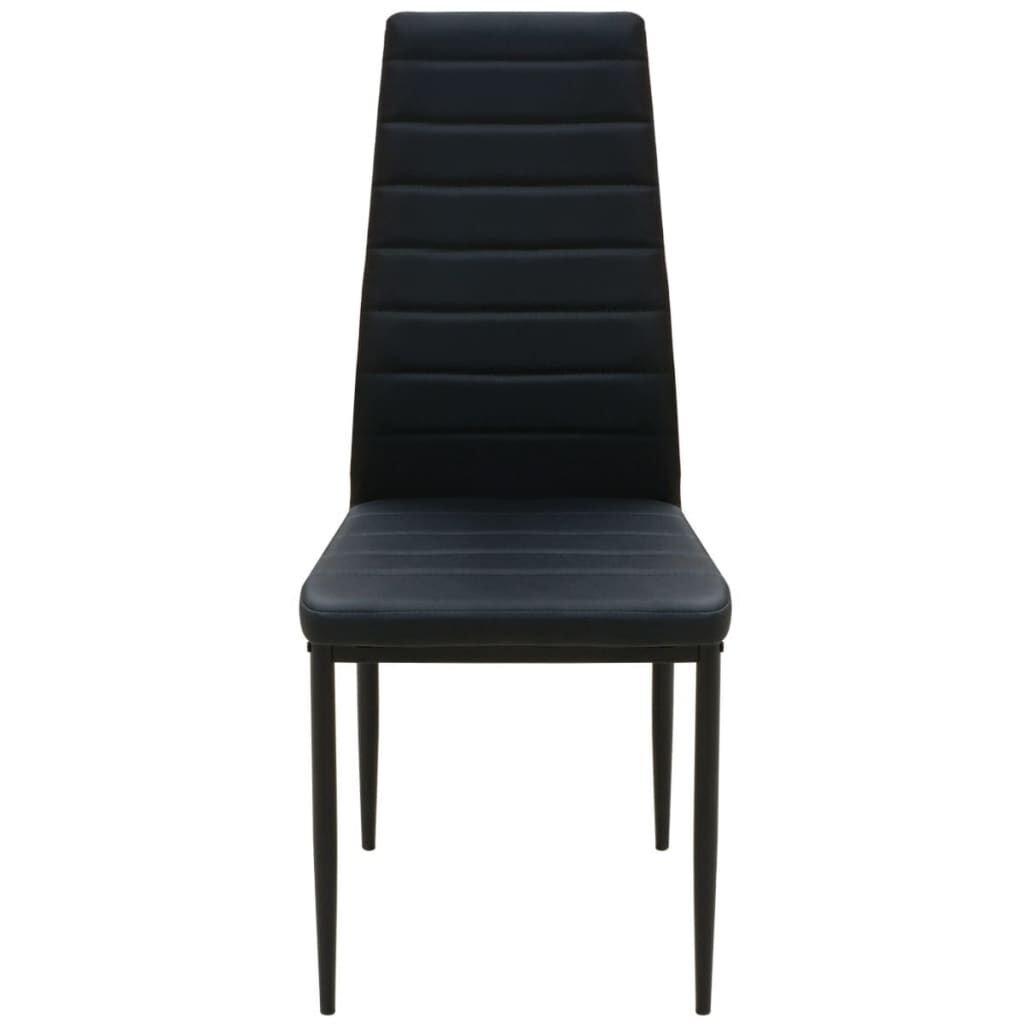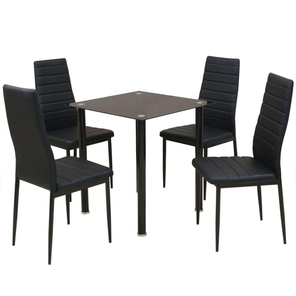 This black dining table set, consisting of 5 pieces, has a sleek, modern design and is perfect for those who are looking to add a touch of style to their interior. The table top is made of high-strength tempered glass, which is easy to clean. Thanks to the thickly padded seat and backrest, these dining chairs offer the utmost seating comfort. The solid powder-coated steel frames are very stable and durable. Assembly is very easy. Delivery includes 1 table and 4 chairs.