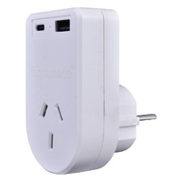 $34.19Lightweight earthed adaptor with 2 pin style outlet suitable for Europe and Bali. Includes type C USB port for phone / tablet charging.