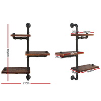 Featuring a set of urban rustic floating pipe shelf that is perfect for homes, offices and cafe interiors. Made from quality metal pipe and solid timber, this unique pipe shelf is designed to fit any space including wall corners. Direction of each shelf can be adjusted before or after being hung.