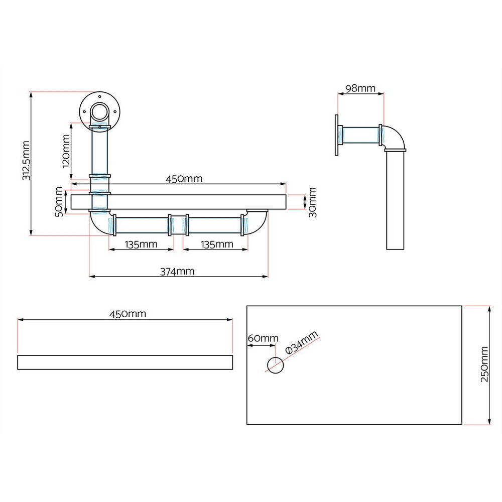 Featuring a set of urban rustic floating pipe shelf that is perfect for homes, offices and cafe interiors. Made from quality metal pipe and solid timber, the pipe shelves can be mounted freely to suit your layout; adding extra shelving space easily and effortlessly. Creating a rustic touch to the space.