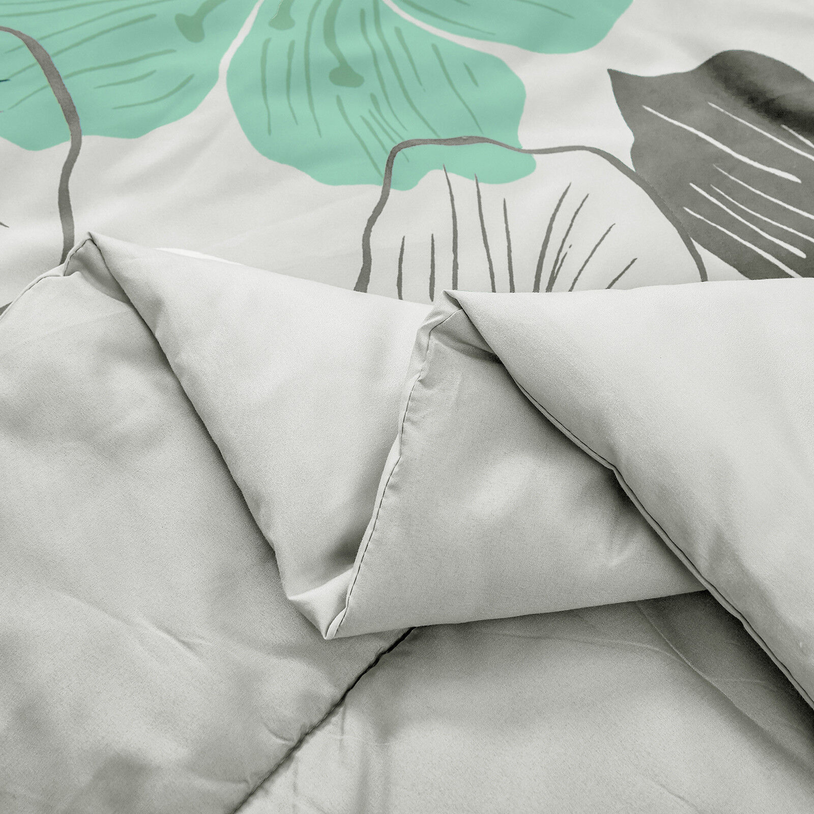 Floral Comforter Set, King Size, Green Floral 3-Piece Bedding, Lightweight Microfiber