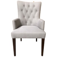The journey to a comfortable dining experience begins with this carver dining chair. Bring home this beautiful dining chair with arms that promises both comfort and strength with its button-tufted seat, fabric upholstery, tapered legs, and a strong structural frame of sustainably harvested rubber wood. Decorate your dining area with this chair in a light grey colour with antique walnut legs and enjoy the beauty of the dining area setting. The dining chair is designed in the French Provincial style and provides comfortable back and lumbar support. Because of its gorgeous looks and designer stitching on the upholstery, it is a beautiful addition to your living area. And thanks to its homely shape, it looks stunning in all decor settings and can be paired with a dining table of any style. A one-year warranty is included with the fully assembled dining chair.