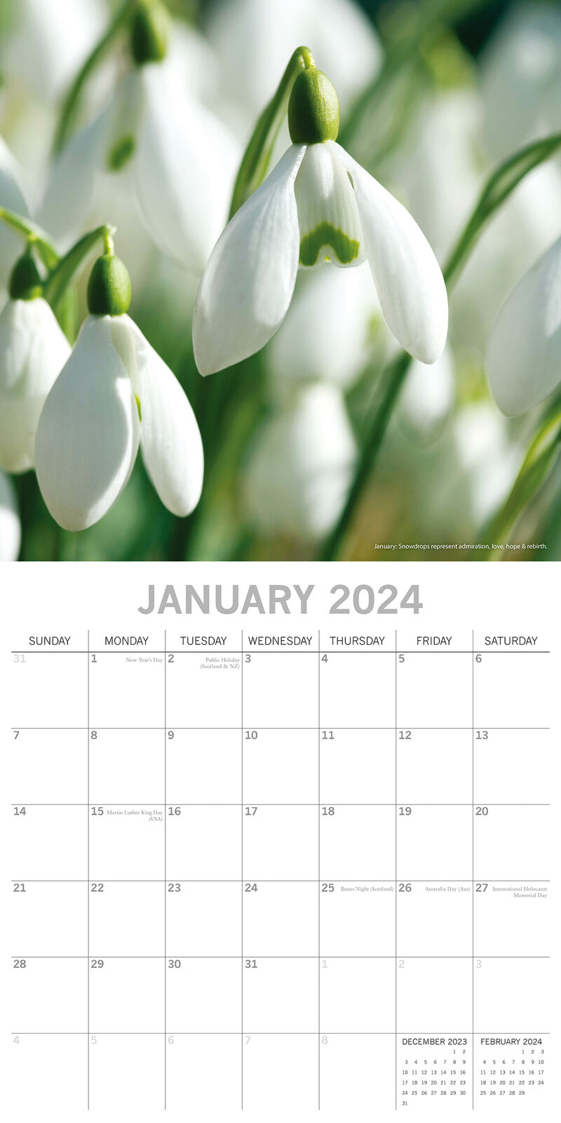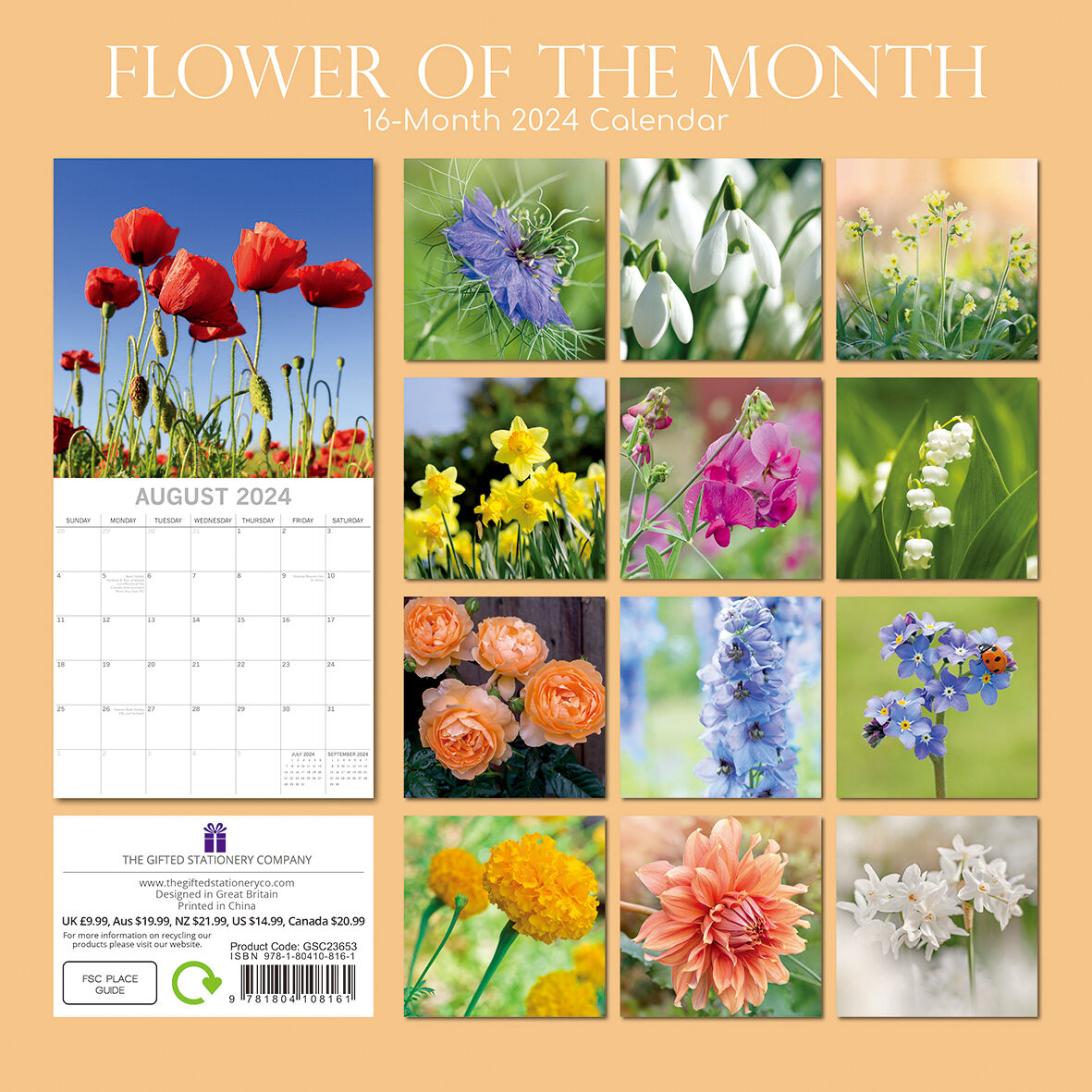 Flower of the Month - 2024 Square Wall Calendar 16 Months Floral Planner Gift
