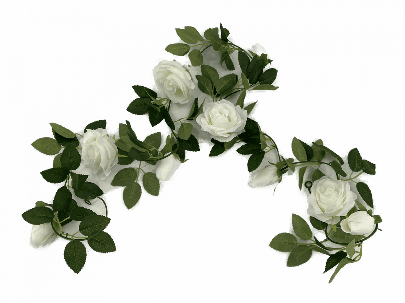 Each strand has seven highly realistic roses in a cluster of lush green leaves