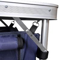 This foldable camping cupboard features a wide work surface and 2 storage compartments. It is perfect for outdoor use. It has a wide work surface and 2 storage compartments, which provides you enough room so that you can have everything you need within reach. The zippered door of the cupboard can be rolled up and down easily, which protects your ingredients or kitchen ware from dirt. The camping cupboard is light in weight. Thanks to the folding design, it is easy to transport and can be stored away quickly when not in use. The carrying handle makes it very easy to bring the cupboard with you when going out to have a picnic or camping trip. Thanks to the sturdy structure, this camping cupboard has a high load capacity up to 30 - 50 kg. Thanks to the metal frame, the robust MDF tabletop and the high-quality 600D oxford fabric, it is highly stable and durable. And the PVC coating also ensures the camping cupboard a long service life.