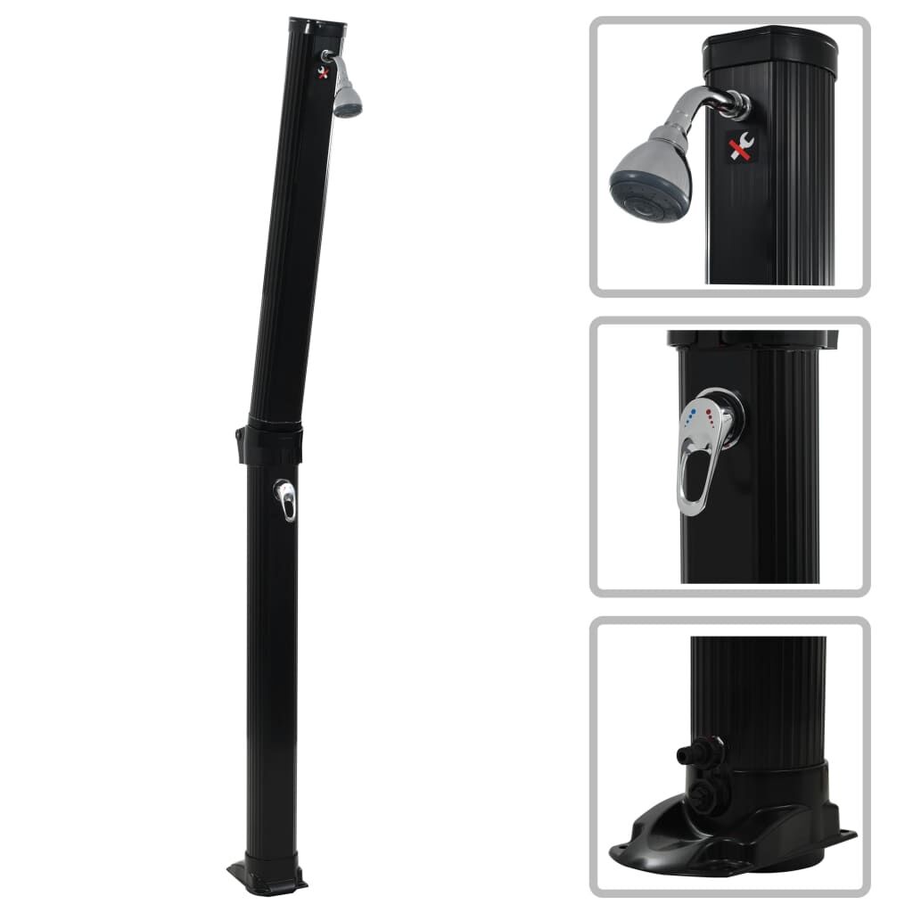 Enjoy a warm shower by the pool or in the garden with this convenient solar pool shower! It uses solar power to heat the water. Meanwhile, it is equipped with a 23 L reservoir. This outdoor shower is made of PVC which makes it durable and does not contain any harmful chemical components. The black body contributes to the quick absorption of the solar energy on sunny days. The water can heat up to 62 °C. The outdoor shower is designed with a handy temperature setting which allows you control hot or cool water easily. Additionally, it can also connect to any standard garden hose without additional plumbing needed. The compact poolside shower is foldable, which makes it easy to transport and store. The product needs to be assembled. Note: Mounting screws are included.