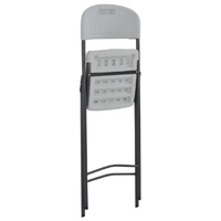 With a sturdy steel frame, the bar chair set is highly durable and stable. Thanks to the weather-resistant HDPE, the chairs are easy to clean and suitable for outdoor use. The chairs are lightweight and easy to move around. The set can be folded when not in use to save space. Delivery includes 2 folding bar chairs.