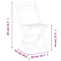 These folding bistro chairs are a perfect addition to your garden and terrace, creating a lasting impression! Durable material: Solid acacia wood is a beautiful natural material. Acacia wood is a tropical hardwood, which is dense, sturdy, and durable..Foldable design: The garden chairs can be easily folded away when not in use, for easy storage and transportation.Easy-to-clean surface: Thanks to the oil finish, the folding chairs are easy to clean with a damp cloth. Good to know:To make sure your outdoor furniture stays beautiful, we recommend protecting it with a waterproof cover.