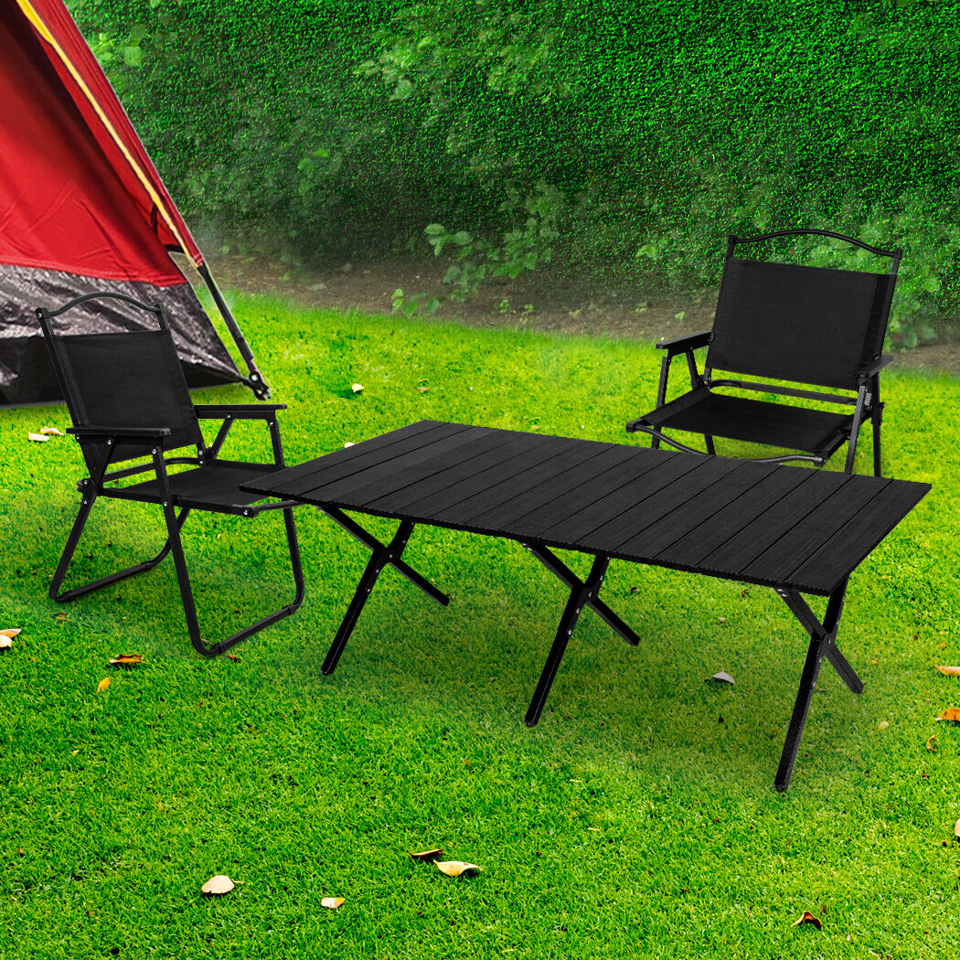 Take your outdoor table and foldable chairs in and out of your car for many camping trips. Specially designed for long use. You can put up to 150kg on top of the table and the chairs seat up to 100kg.