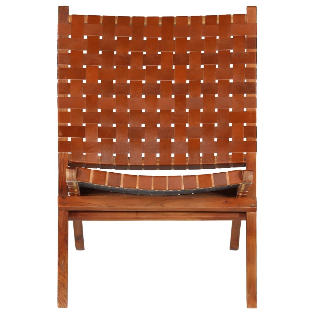 This soft and comfortable genuine leather chair has a rustic design that's all the rage right now. It will look great not only in your living room at home but also in your outdoor living space. The real leather seat and backrest are soft to the touch and very comfortable, while the solid acacia wood frame makes the chair durable. Thanks to the folding design, this relaxing chair can be easily stored when not in use. The item is already assembled; no assembly is required. Important note: Leather patterns may vary from piece to piece, making each of our chairs unique. The delivery is random, ensuring the exclusivity and individuality of your product.