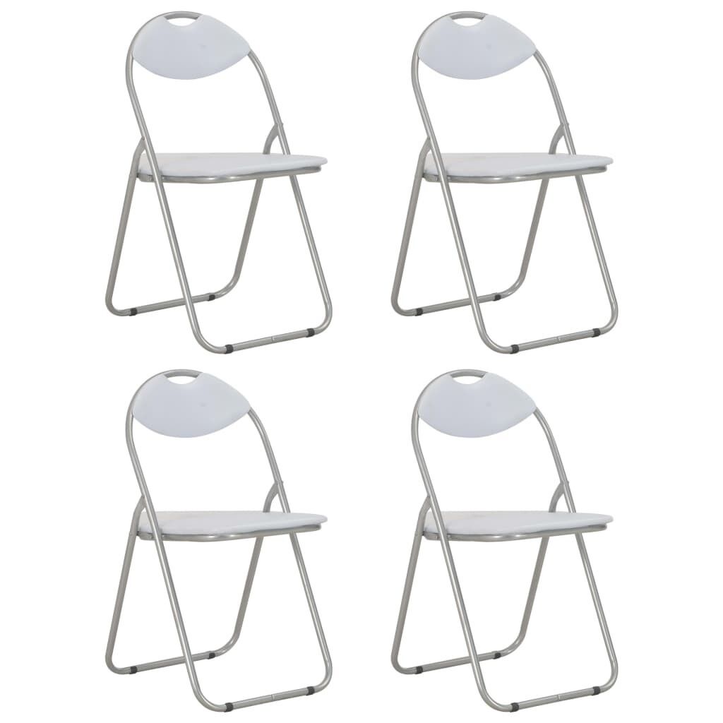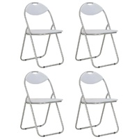 $87.41This foldable chair set is suitable for use in the dining room, kitchen, hallway or office room. This set will come in handy when extra seating space is required. They can be conveniently folded when not in use to save storage space. The steel frames make the chairs exceedingly sturdy and durable. In addition, the stain resistant artificial leather cover enables the chairs easy to wipe clean with a damp cloth. Thanks to the light-weight construction, the chairs are easy to transport. Our foldable chairs are already assembled; no assembly is required. Delivery includes 4 dining chairs.
