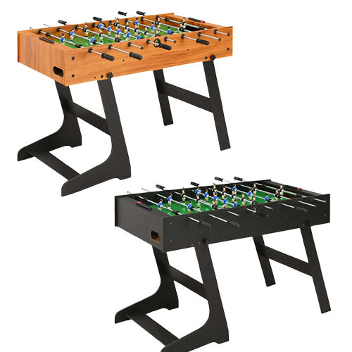 $234.99Having a professional sized football table right in your very own home is now possible with our 121 cm football table. It will bring loads of fun to any setting, perfect for home game room, arcades, as well as other entertainment areas. This football table is suitable for one-on-one competition or group play. The table is crafted with sturdy MDF and chromed-finished steel rods to keep the table functioning for years to come. The dimensions of the printed playfield conform to the official tournament standard, which gives you a realistic playing experience. It features 8 rows to allow 4 rows per team, 11 black players and 11 blue players, as well as a cup holder on each end to stay hydrated when competition heats up. Equipped with flexible sliding player rods with non-slip handles, it offers you easy and comfortable grip. Its simple foldable functionality makes a storage a snap. When it's gaming time, the table can be easily folded back, providing hours of fun for your family. A complete football game table will be delivered, including 2 goals, 2 footballs, 2 scoreboards, 8 player rods and 22 players.