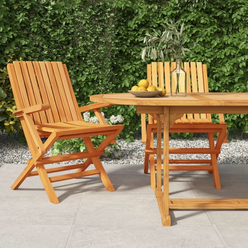 $164.69Enjoy a cosy leisure time with your family and friends in your outdoor space on these wooden folding garden chairs! Solid teak wood: Solid teak wood is a beautiful natural material. It has been seasoned, kiln dried and then fine sanded to give a very smooth appearance. Teak wood is known for its exceptional strength and weather resistance.Foldable function: The garden chair can be folded away to save space when not in use.Comfortable experience: The backrest of the garden seating gives you excellent support, providing an optimal comfortable experience.Slatted design: The outdoor chair with a slatted design looks simple and timeless. Note:To make sure your outdoor furniture stays beautiful, we recommend protecting it with a waterproof cover.Good to know:To make assembly as easy as possible, each product is delivered with a manual.